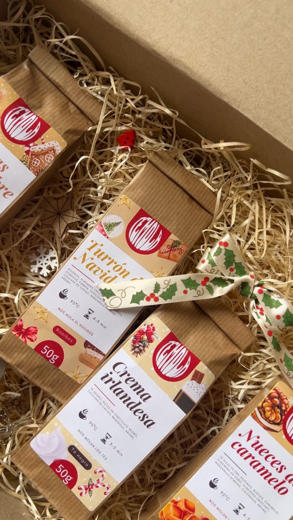 🎁 INCLUYE: 4 tés o infusiones a tu elección, decoración navideña, un infusor, una tarjeta de felicitación de la Navidad