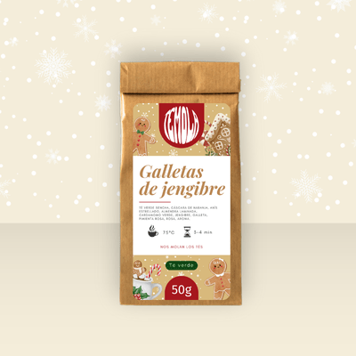 Deléitate con nuestro té verde Galletas de Jengibre, una mezcla cálida y especiada que captura el dulce sabor de las tradicionales galletas navideñas. Perfecto para una pausa acogedora.